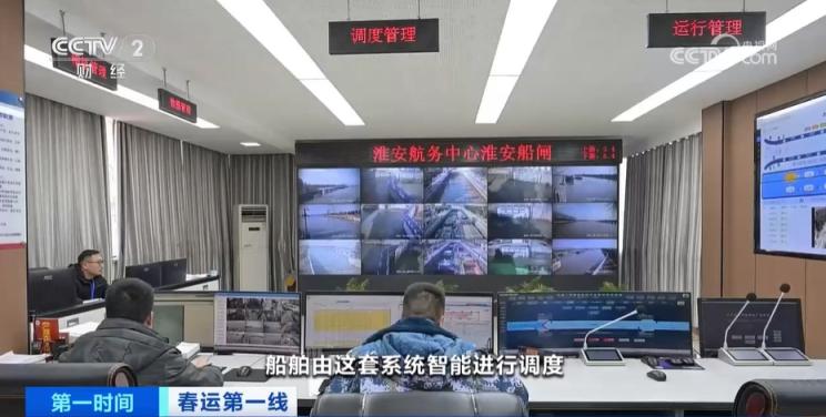 淮安航务中心淮安船闸管理所副所长冯宇介绍,所有船舶首次进入京杭运河时候,数据全部要录到系统里面,包括船舶的长和宽。船舶由这套系统智能进行调度,最大化(提高)闸室利用率,而且又能保证船舶又快又好通过船闸。